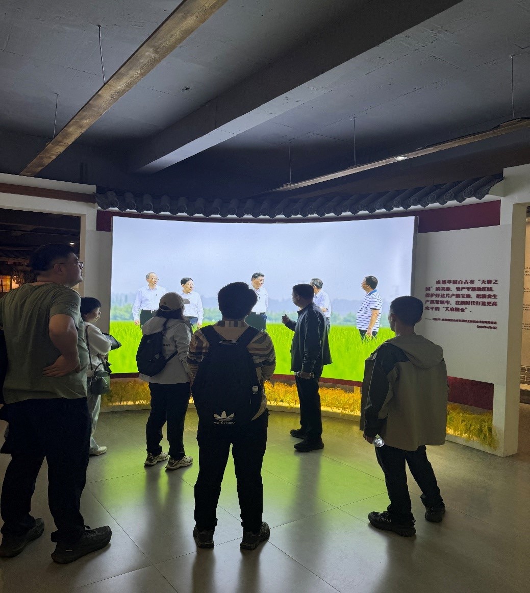 副院长谢瑜、章娟的带领下,前往眉山市东坡区太和镇永丰村,开展“跟着总书记的考察足迹·感悟眉山实践”主题党日活动,也是本年度首次暨总第四次“祖国大地上的集体备课”活动。此次活动旨在从总书记的考察足迹中感悟思想伟力、汲取奋进力量,秉持“教育者先受教育”的理念,通过“外出备课、实地调研”的方式,引导教师党员从“天府粮仓”的实践现场汲取养分,将维护国家粮食安全、实施乡村振兴的生动案例精准融入研究生思政课堂。