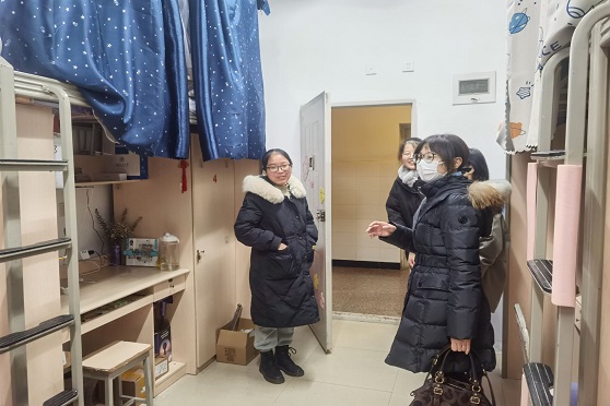 走访过程中,熊钰副书记与各年级学生进行了亲切交流,认真询问了解同学们考研就业、期末考试、学校适应等学习和生活情况,并对同学们的毕业论文写作、职业生涯规划提出了指导性意见,嘱托同学们一定要增强安全防范意识,注意防火防盗。